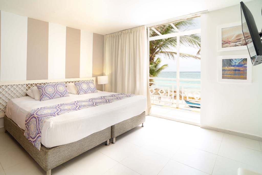 Habitaciones amplias, con espacios bien distribuidos y funcionales, diseñados para conseguir el mejor descanso y esparcimiento. Con capacidad para acomodación desde dos, hasta para cinco personas. Las habitaciones Superior Plus Triple Familiar gozan dos espacios interconectados entre sí, que permiten total autonomía y que se adaptan a grupos y familias. Constan de una habitación con una cama king size, un segundo ambiente con dos camas dobles, un baño y vista al mar de los siete colores.